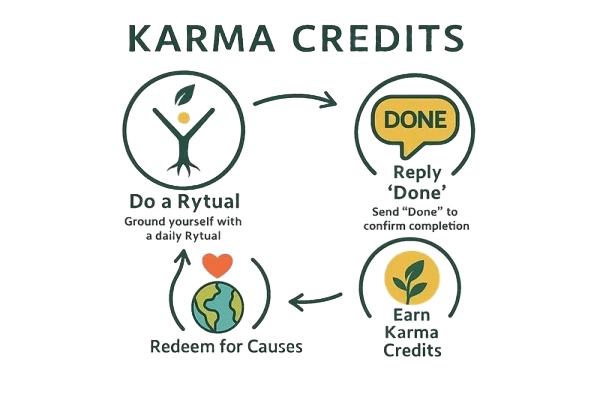 Every “DONE” reply earns you Karma Credits—small tokens of presence that become fuel for good.